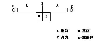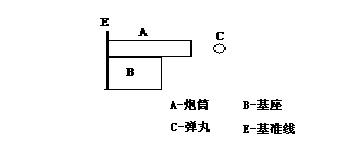 設(shè):A—炮筒;B—基座;C—彈丸;E—基準線。